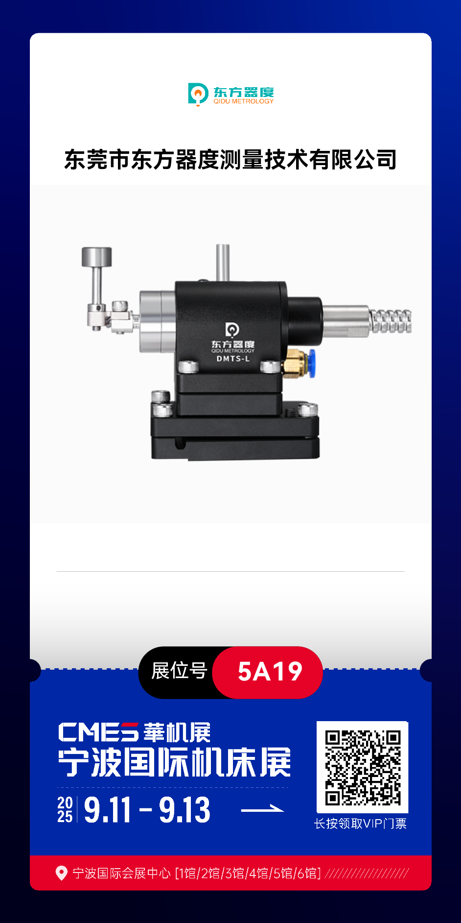 【Foshan Qidu Intelligent Technology Co., Ltd. News Center】 September 11-13, 2025,Ningbo International Convention and Exhibition CenterThe 2025 Ningbo International Machine Tool Show (CMES), an industry event focusing on intelligent manufacturing and high-end equipment, will be held. Foshan Qidu Intelligent Technology Co., Ltd. (hereinafter referred to as "Foshan Qidu Intelligent"), as an innovative force in the field of industrial measurement, will showcase its core measurement technologies and star products at the exhibition. Booth No.5A19We sincerely invite industry colleagues and customer partners to come and exchange ideas and explore how industrial measurement can enable the upgrade of smart manufacturing.